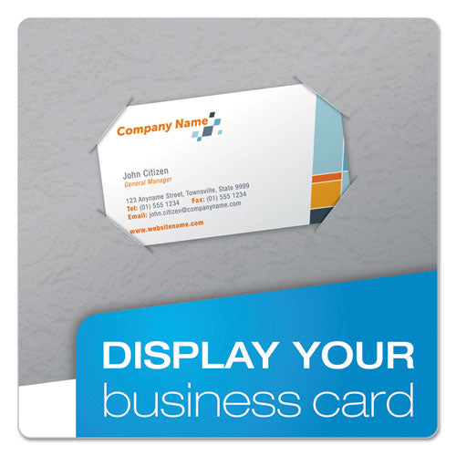 Report portfolios let you keep loose papers with fastened report. Leatherette-grained stock for a rich feel. Business card slot on inside front pocket. Holds up to 135 sheets of paper.
