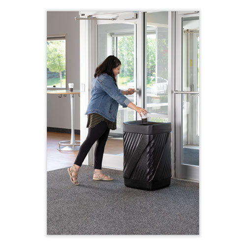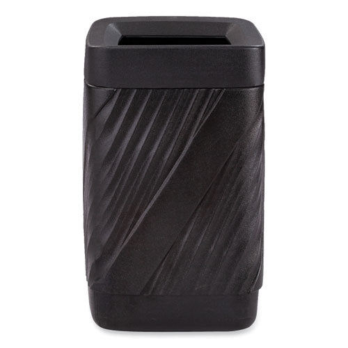 This affordable and stylish waste receptacle can be used indoors and outdoors. Durable and modern-looking, it's perfect for your sanitation needs. The contemporary look features a fluted/twisted receptacle design. Open top for easy access and overflow trash allowance. The durable, high-density polyethylene with built-in UV inhibitors protects from fading. The telescoping base hides trash bags. Use with standard 32 x 44 trash bags. Easily adaptable for anchoring or weighting devices. 32-gallon capacity.Note: This is a non-returnable item.