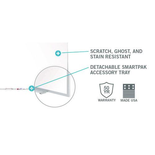 Unsurpassed in performance and durability, Ghent Two-Piece M1 Porcelain Magnetic Whiteboards are designed with communication, collaboration and learning in mind. Featuring a 28-gauge, porcelain-on-steel surface mounted to a strong, three-eighth inch thick backing, M1 boards deliver excellent durability as well as superior scratch-, dent- and stain-resistant performance. Their bright white surfaces also deliver a high-contrast field to help dry erase ink pop outeven those sitting furthest away should be able to read the board clearly. Ideal for high-traffic environments, particularly schools and offices, their durable porcelain surface erases easily, without ghosting; and as the surface is made of porcelain-on-steel, a wide range of magnetic board accessories are also compatible, opening up a whole world of additional creative possibilities. Each board features a sleek frame and a detachable accessory tray with protective end caps. Worry-free packaginglarge-format M1 board surfaces are shipped in two piecessimply use the included joiner strip, which gives the illusion of one seamless board surface, before mounting. Both pieces are shipped in the same carton.Package Includes: Detachable Accessory Tray; Joiner Strip; L-Hanger Wall-Mount HardwareNote: This is a non-returnable item.