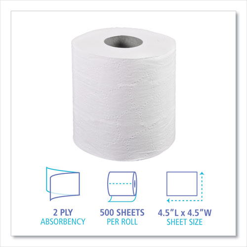 Two-Ply Toilet Tissue, Septic Safe, White, 4.5 x 4.5, 500 Sheets/Roll, 96 Rolls/Carton