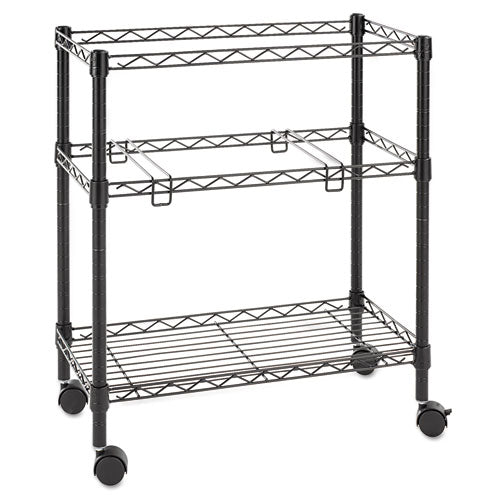 Two-Tier File Cart for Front-to-Back + Side-to-Side Filing, Metal, 1 Shelf, 3 Bins, 26" x 14" x 29.5", Black