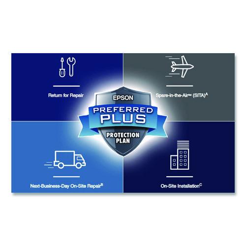 Epson® Preferred Plus Exchange Service is a worry-free solution that will help you maximize productivity and protect your investment. Epson® Preferred Plus Exchange Service has got you covered. This two-year Epson® Preferred Plus plan offers either a Three Business Day On site repair or a Three Business Day Whole unit exchange service. Both plans help you get back up and running quickly. These worry-free solutions help maximize productivity and peace of mind by extending product protection after coverage under the limited warranty for up to a total of five years of continuous coverage from date of purchase. Plan must be purchased at the time of hardware purchase. For plans with non-continuous coverage, please contact Epson® to learn more about your service options.Note: This is a non-returnable item.