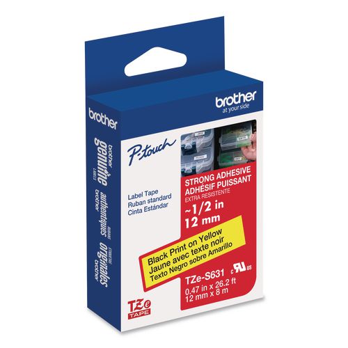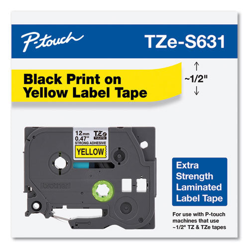 TZe Extra-Strength Adhesive Laminated Labeling Tape, 0.47" x 26.2 ft, Black on Yellow