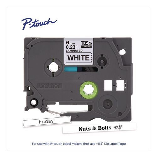 TZe Standard Adhesive Laminated Labeling Tape, 0.23" x 26.2 ft, Black on White