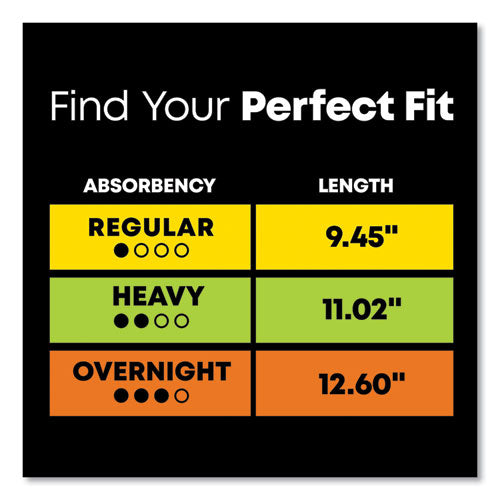 Get up to nine hours of XPRESS DRI protection with no harsh ingredients. XPRESS DRI technology absorbs in seconds and locks away wetness to help stop leaks, so you can focus on your day, not your period. Unique wing shape ensures a secure fit, helping prevent shifting and bunching. Dermatologist-tested to be gentle on skin and hypoallergenic. Made without perfume or lotion.