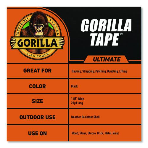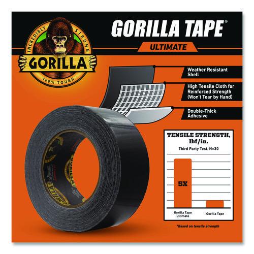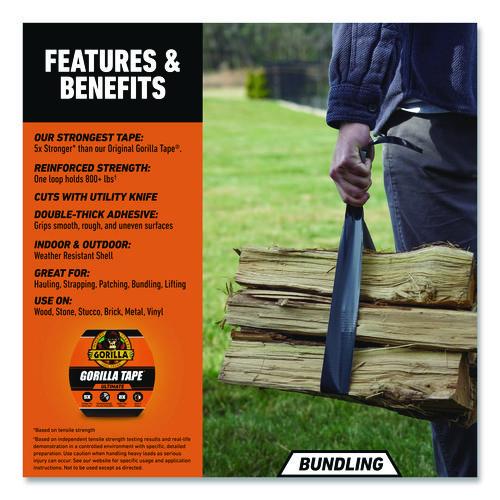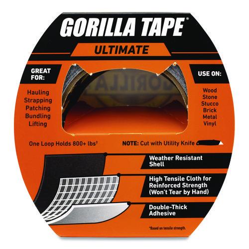 Ultimate Gorilla Tape® is five times stronger than our original Gorilla Tape making it our strongest tape. It is made with a weather-resistant shell, high-tensile cloth, and our double-thick adhesive. With reinforced strength, one loop holds 800+ lbs (based on tensile strength), making it great for hauling, strapping, patching, bundling, and lifting. The extra thick adhesive grips smooth, rough, and uneven surfaces. Use on wood, stone, stucco, brick, metal, vinyl, and more.