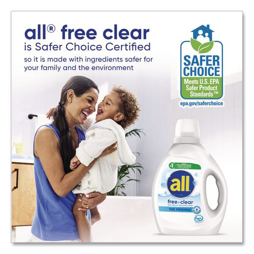 When it comes to laundry care for sensitive skin, all® Ultra Free Clear Liquid Laundry Detergent is the obvious choice. This hypoallergenic laundry detergent is recommended by dermatologists, allergists and pediatricians for sensitive skin. 100% free of perfumes and dyes, yet tough on stains. This detergent is safe to use in any washing machine and at any water temperature.