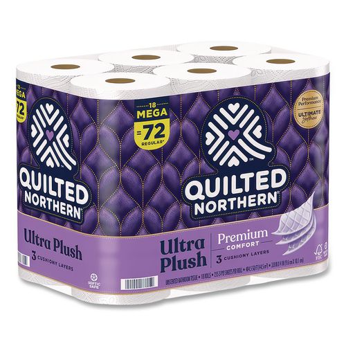 Ultra Plush Bathroom Tissue, Mega Rolls, Septic Safe, 3-Ply, White, 284 Sheets/Roll, 18 Rolls/Carton
