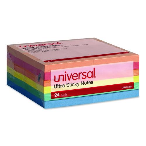 Ultra Sticky Note Pads, 3" x 3", Assorted, 100 Sheets/Pad, 24 Pads/Pack