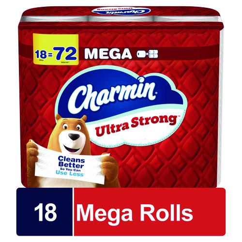 Get sparkly clean with Charmin Ultra Strong. It's four times stronger when wet and has a diamond weave texture. It's woven like a washcloth and it holds up when you wipe. It even cleans better so you can use less and go longer without changing the roll. Larger rolls mean more bang for your behind so you'll be running back to the store less and less (based on number of sheets in Charmin Regular Roll bath tissue). Our Charmin Ultra Strong toilet paper is also two-ply and is designed to be clog-safe and septic-safe so you can flush confidentially and keep clean. We all go, why not Enjoy the Go with America's favorite toilet paper.