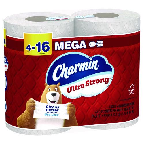 Get sparkly clean with Charmin Ultra Strong. It's four times stronger when wet and has a diamond weave texture. It's woven like a washcloth and it holds up when you wipe. It even cleans better so you can use less and go longer without changing the roll. Larger rolls mean more bang for your behind so you'll be running back to the store less and less (based on number of sheets in Charmin Regular Roll bath tissue). Our Charmin Ultra Strong toilet paper is also two-ply and is designed to be clog-safe and septic-safe so you can flush confidentially and keep clean. We all go, why not Enjoy the Go with America's favorite toilet paper.