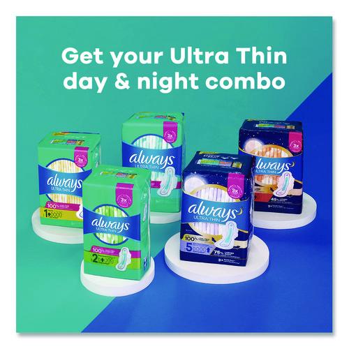 Think all feminine hygiene pads are the same? Think again! Always Ultra Thin Pads with Flexi-Wings are Alway's best yet, providing people with periods up to 100% leak-free comfort. Always Ultra Thin Pads with Flexi-Wings have a flexible sanitary pad design that moves with you. Plus, Ultra Thin Pads have Always 3x Protection System™ to give you peace of mind day and night. RapidDRY™ absorbs gushes 90% faster than the leading store brand. The LeakGUARD™ core locks in leaks for long-lasting protection. OdorLOCK™ helps prevent unwanted odors to help you feel fresh and clean throughout your day! Did you know that 50% of people with periods are wearing the wrong size pad? If you are wearing too small of a pad, then you will leak. On the other hand, if you are wearing too big of a pad, then you will feel unnecessary bulk. Always Ultra Thin is here to help! Always Ultra Thin has you protected day and night from your first period to your last.