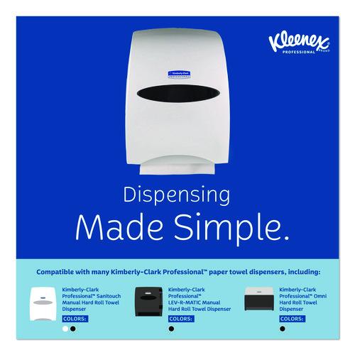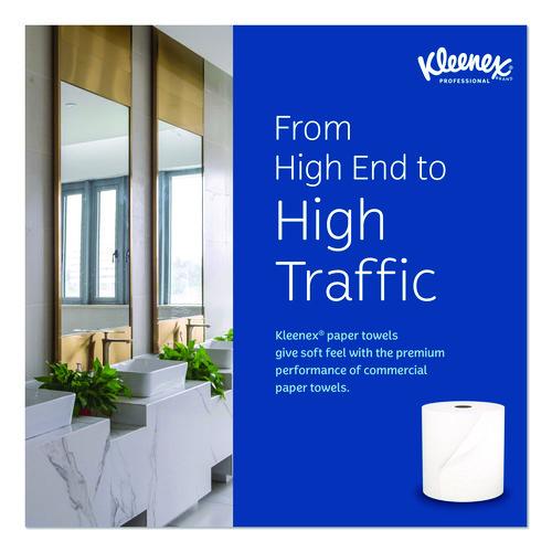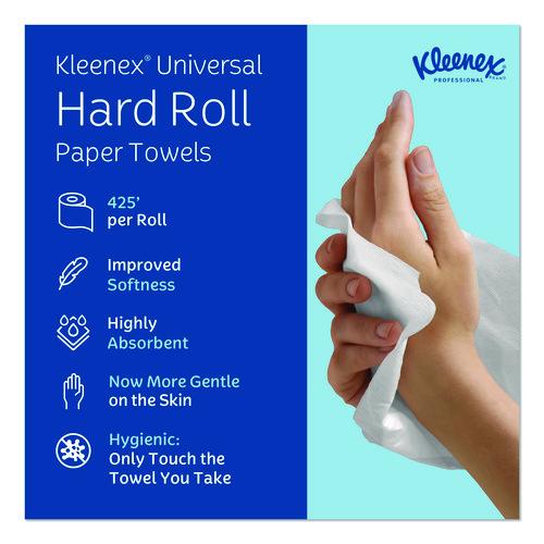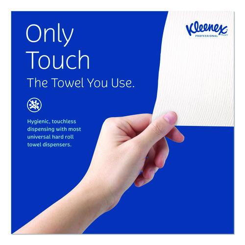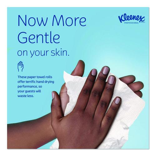 Kleenex® provides reliable balance of efficiency, performance and value. Drying is one of the most important steps in the hand washing process, and how you dry matters. Forced air dryers and hot air dryers can take two or even three times as long to use as a paper towel. Studies show that while the overall cost per use is comparable, the likelihood of spreading germs is greatly reduced with the use of absorbent, single-use drying towels, such as white Kleenex® Hard Roll Paper Towels. Germ counts are significantly lower following the use of a touch-free paper towel dispenser (like the compatible Kimberly-Clark Professional™ Hard Roll Paper Towel Dispenser)—as much as a 200% decrease when compared with using either jet or hot air dryers. And, rather than blowing germs into the air during use, the paper towels are thrown neatly away. Now more gentle on the skin, these paper towel rolls offer terrific hand drying performance, so your guests will waste less. And now with improved softness, Kleenex® Hard Roll Paper Towels offer a superior hand drying experience for your guests and visitors.