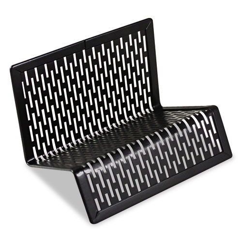 Strong, professional grade punched metal with decorative urban style slotted pattern. High quality satin finish complements any décor. Features protective feet to prevent surface wear and scratches on the desktop surface. Reinforced rounded edges provide durability and attractive detailing.