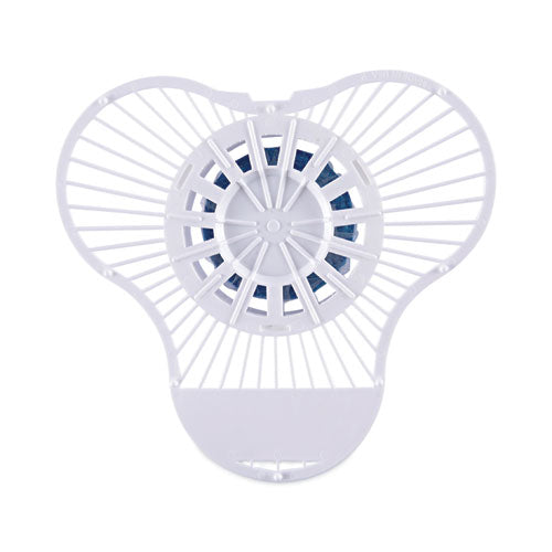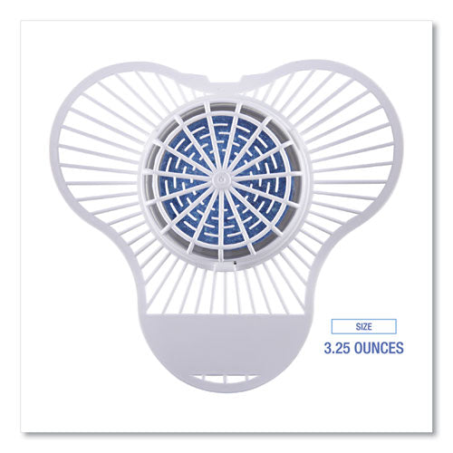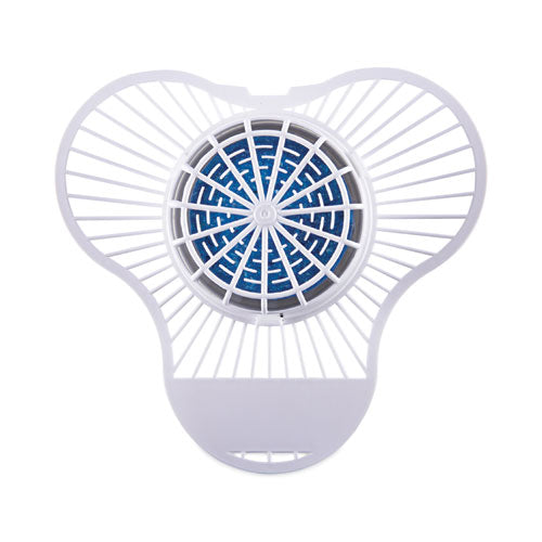 Boardwalk® Urinal Screen with Non-Para Deodorizer Block deodorizes, cleans, and prevents scale build-up within the urinal. Every flush of the urinal tints the water blue so the water is noticeably treated. The pleasant, scented block eliminates odors and helps to maintain drain lines by fighting bacteria growth. The flexible plastic screen traps debris to further protect the drain. Long-lasting, lasts up to 1,500 flushes.