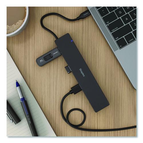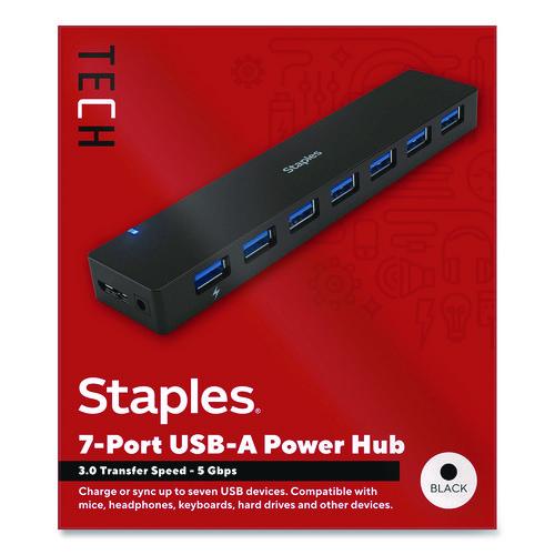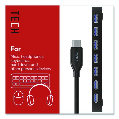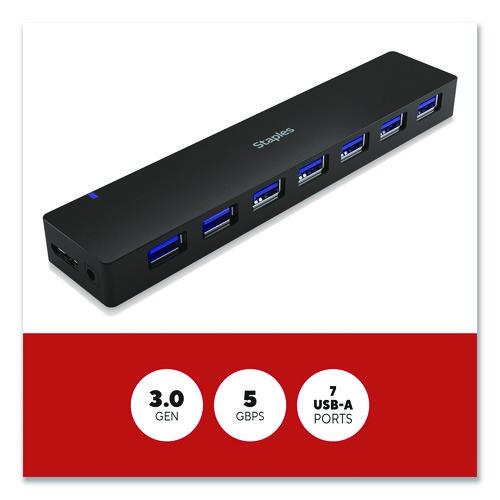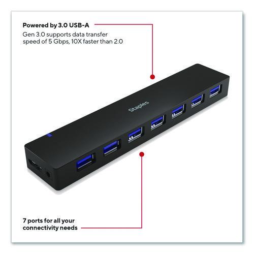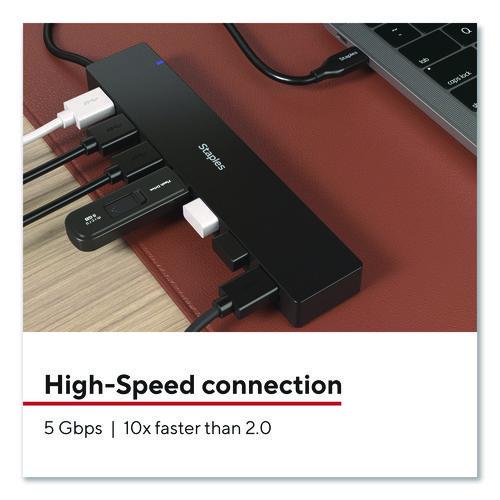Never be without enough connection ports again. Connect USB peripheral devices - like mice, keyboards, headphones, and charging cords - for a completely connected workstation. Powered by USB 3.0, this hub promises fast data transfer speeds up to 5 Gbps. Its compact and sleek design will fit neatly on your desk and reduce clutter.