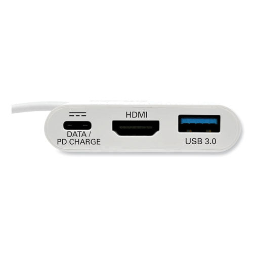Expands the potential of your tablet, laptop, Chromebook, MacBook, smartphone or PC's USB-C or Thunderbolt 3 port. It's ideal for transmitting video to a large display and powering and charging a PD Charging-compliant mobile device—all at the same time. With a source device that also supports USB DisplayPort Alternate Mode, you can extend video from your primary display to another, duplicate the same video on both displays, or change the second display to your primary. Requires no software, drivers or external power. Connect the reversible USB-C plug to your source device's USB-C or Thunderbolt 3 port. The fumble-free USB-C plug connects in either direction to ensure fast, easy connection every time. The USB-C Power Delivery (PD) port provides power and charging to the PD Charging-compliant device (such as a MacBook or Chromebook) it is connected to. Connect the device's AC wall charger to the USB-C PD port, which supports power input up to 20V/3A (60W).