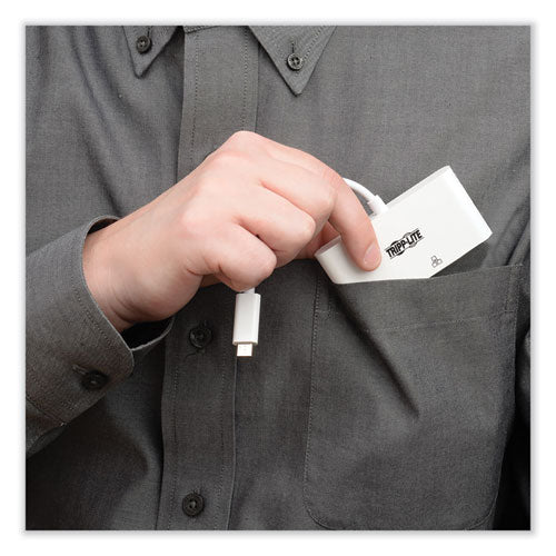 Expands the potential of your tablet, laptop, Chromebook, MacBook, smartphone or PC's USB-C or Thunderbolt 3 port. It's ideal for transmitting video to a large display and powering and charging a PD Charging-compliant mobile device—all at the same time. With a source device that also supports USB DisplayPort Alternate Mode, you can extend video from your primary display to another, duplicate the same video on both displays, or change the second display to your primary. Requires no software, drivers or external power. Connect the reversible USB-C plug to your source device's USB-C or Thunderbolt 3 port. The fumble-free USB-C plug connects in either direction to ensure fast, easy connection every time. The USB-C Power Delivery (PD) port provides power and charging to the PD Charging-compliant device (such as a MacBook or Chromebook) it is connected to. Connect the device's AC wall charger to the USB-C PD port, which supports power input up to 20V/3A (60W).