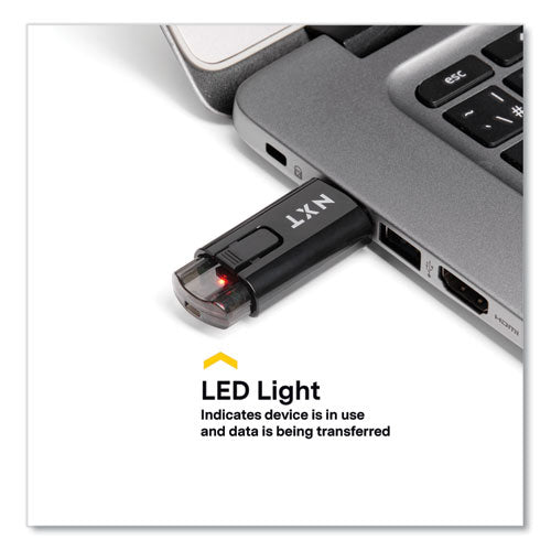 Back up and copy files with this USB 3.2 flash drive. It is made of ABS plastic for durability. Easily attach it to a lanyard or keyring with the lanyard hole. Retractable design protects the connector when not in use. The LED light indicates when data is being transferred.