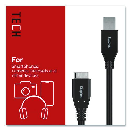 Reliably charge or sync personal electronic devices - like smartphones, tablets, cameras, gaming headsets and more - with the Staples TECH USB-A to Micro USB Type B cable. It is compact to reduce cord clutter, and the USB 2.0 boasts high-speed data transfer speeds up to 480 Mbps. Keep your workday running smoothly with the Staples TECH USB-A to Micro USB Type B cable.