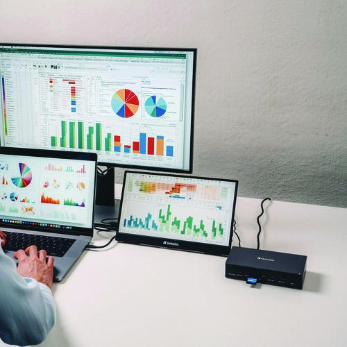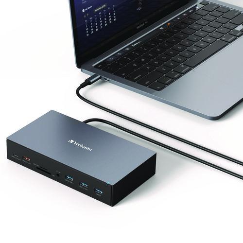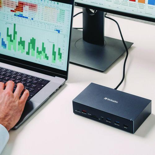 This comprehensive docking station features 17 ports including three (3) high-resolution HDMI and two (2) DisplayPort outputs - to provide support multi-display arrangements for advanced multitasking. With USB-C Power Delivery (PD), devices charge rapidly, keeping your setup energized and operational.