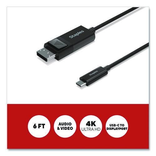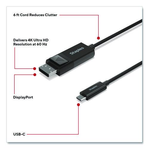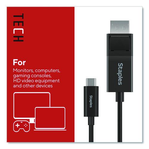 For work or entertainment an extra display often comes in handy. With the Staples TECH USB-C to DisplayPort cable, you can connect additional monitors, displays, gaming consoles, projectors and more. Delivering crisp 4K Ultra HD resolution this cable promises clear audio and video for an exceptional experience. It provides ample length to connect devices across your workspace while also reducing cord clutter. This cable is the perfect choice for outfitting your work, gaming or entertainment space. Enjoy high resolution audio and video so you can upgrade your home or office workspace and do your best work.