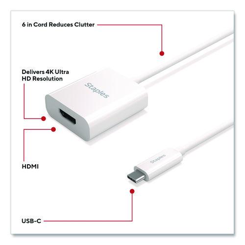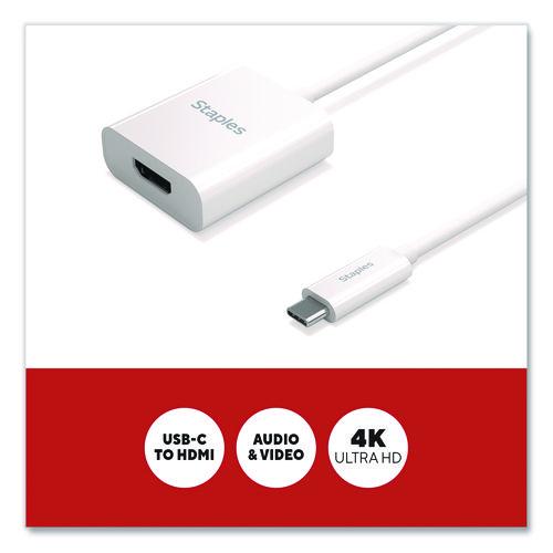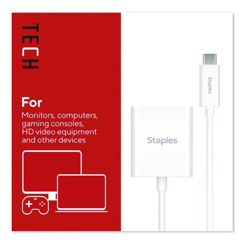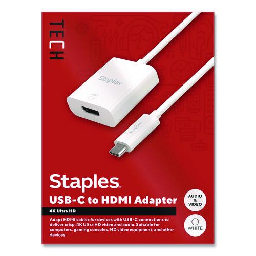 For work or entertainment an extra display often comes in handy. With the Staples TECH USB-C to HDMI adapter, you can convert a USB-C output to an HDMI input to connect additional monitors, displays, gaming consoles, projectors and more. Delivering crisp 4K Ultra HD resolution, this adapter promises clear audio and video for an exceptional experience. Featuring a compact cord, this adapter will keep your work or entrainment space clutter free. This adapter is the perfect choice for outfitting your work, gaming or entertainment space. Enjoy high resolution audio and video between previously incompatible devices so you can upgrade your home or office workspace and do your best work.