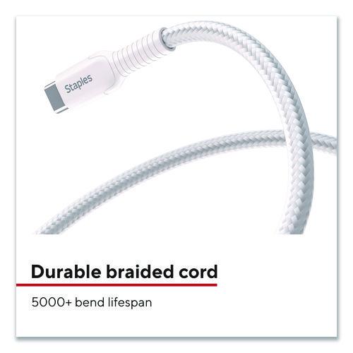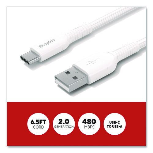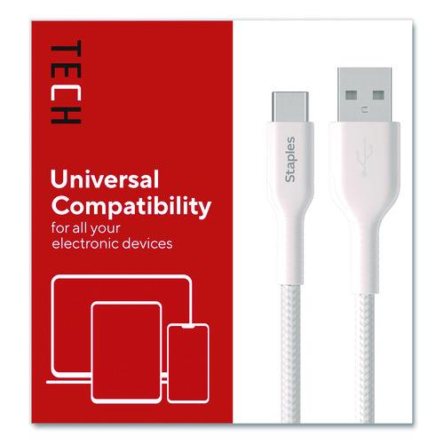 Power your smartphones and tablets with this Staples® USB-C to USB-A Braided Cable. The unique braided design of this charging cable provides extra durability, prevents tangles and has been tested to withstand up to 5,000 bends. The cable length gives you extra reach when charging your devices.