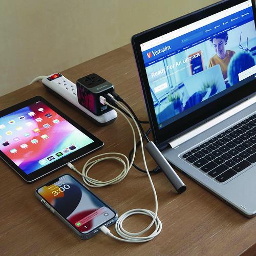 Convenient to carry, this compact adapter also allows six devices to be charged simultaneously through the AC power socket, USB-A and USB-C ports. The USB-A and USB-C ports on the bottom of the adapter charge your necessary USB devices including smartphones, Bluetooth speakers, tablets or power banks.Package Includes: Certified Fuse; Spare Fuse; Quick Start Guide