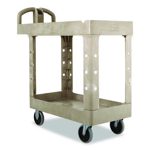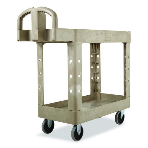 Utility Cart, Plastic, 2 Shelves, 500 lb Capacity, 17.25" Wide, Beige