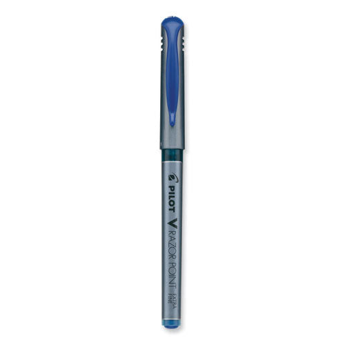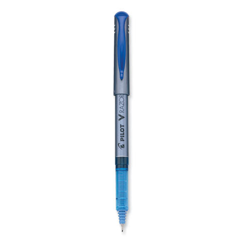 V Razor Point Liquid Ink Porous Point Pen, Stick, Extra-Fine 0.5 mm, Blue Ink, Gray/Translucent Blue Barrel, Dozen