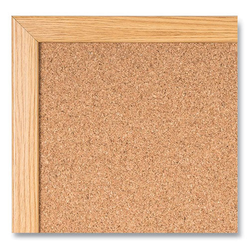 The MasterVision™ Maya Cork Bulletin Board is an economic solution that delivers effective posting and versatility for office and facility communications. Designed for commercial applications, the Maya bulletin board’s self-healing surface never shows pin holes and is made from renewable cork; making it both durable and resilient. Framed in sturdy wood MDF with oak finish, it can be positioned either vertically or horizontally, offering versatility when reconfiguring a workplace or where wall space is limited.Package Includes: (4) Corner Mounting Kit; Instructions