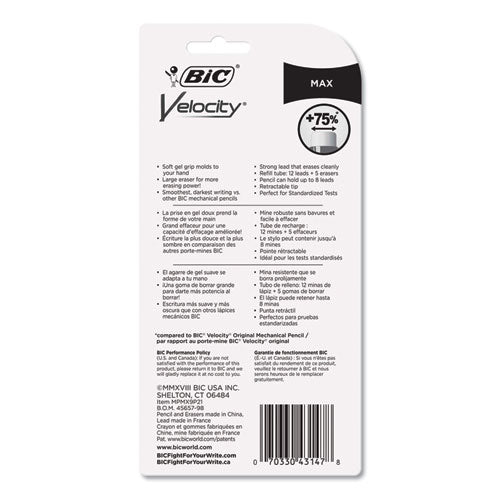 Wider eraser compared to BIC® Velocity® Original Mechanical Pencil. Soft gel grip molds to your hand. Smoother and darker writing versus other BIC® mechanical pencils.