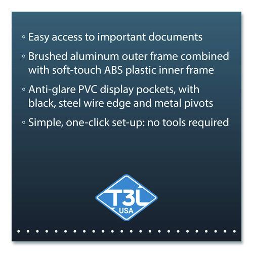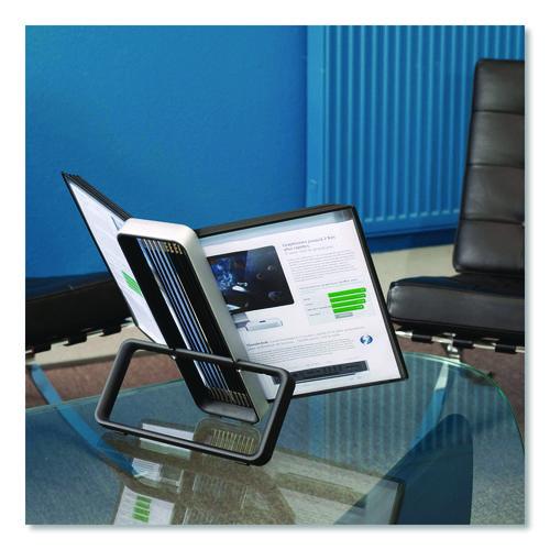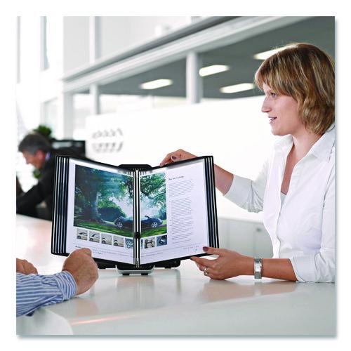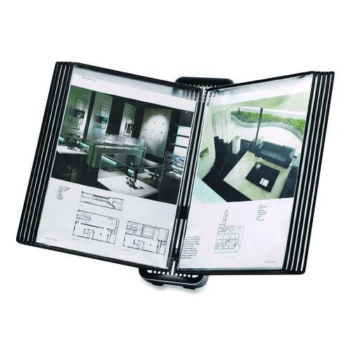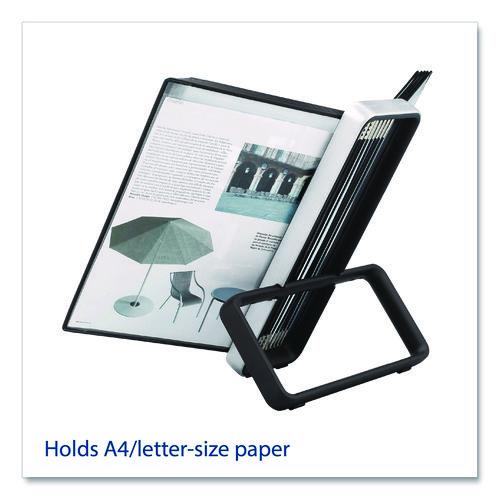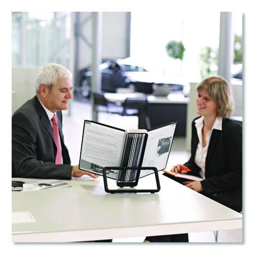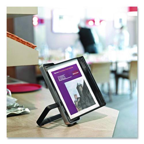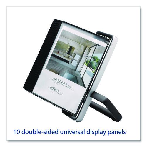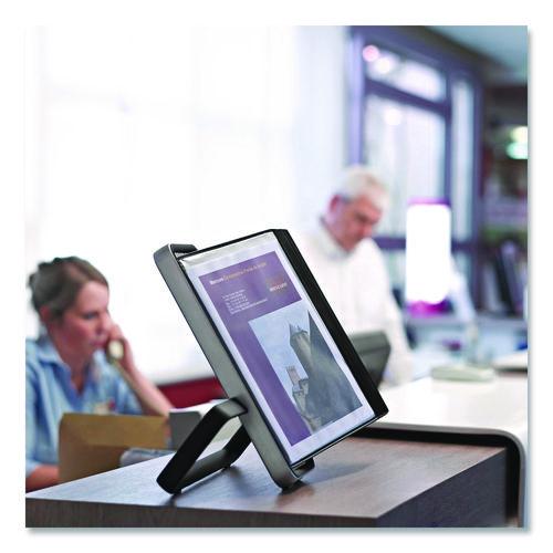 The VEO Desk System offers a practical and professional solution for keeping important presentation and reference documents easily accessible. This award-winning desk stand is designed for quick and simple setup, providing ultra-stability for reliable use. The elegant stand features a sleek aluminum alloy base with a black soft grain finish, adding a sophisticated touch to any workspace. It includes 10 universal display panels that can hold both letter-size and A4-size documents. With a total of 20 viewing sides, the system maximizes document visibility and organization. Ideal for professionals, this desk system ensures that key materials are always within reach, helping you stay organized and efficient.Note: This is a non-returnable item.