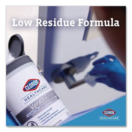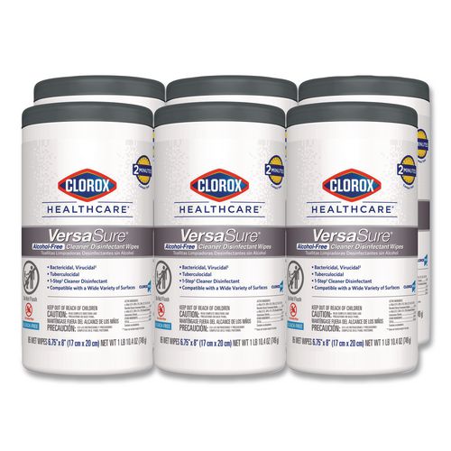 Clorox Healthcare® VersaSure Cleaner™ Disinfectant Wipes kill over 40 pathogens quickly on a broad range of surfaces. These strong and durable clothlike wipes are your alcohol-free solution to cleaning and disinfecting. VersaSure wipes are EPA registered to kill pathogens on hard surfaces in as fast as 30 seconds for most bacteria and viruses, including mumps, measles, MRSA and tuberculosis. These one step disinfecting wipes meet EPA efficacy testing requirements for hospital disinfection, making them great for daily use in your healthcare facility. Designed for patient and staff comfort, the alcohol free quat formula is made with no harsh chemical odors, fumes or added fragrances. The nonwoven wipe does not leave lint on surfaces, and the larger wipe covers more surface area with less effort. Intended for use in healthcare settings.