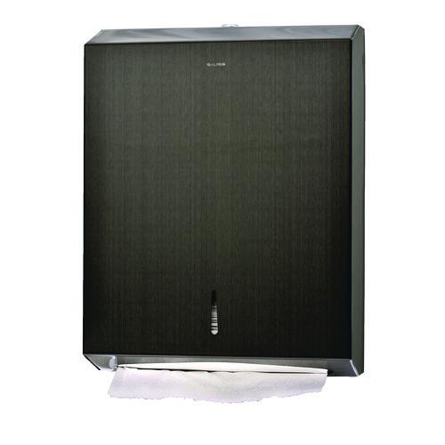 The Alpine Industries C-Fold/Multi-Fold Paper Towel Dispenser is a high-capacity dispenser that's efficiently designed to dispense one towel at a time. Perfect for heavy use, it accommodates up to 400 C-Fold or 525 Multi-Fold towels. Expertly crafted using durable 304 stainless steel, this product is built to provide long-lasting strength and use. Ideal for high-traffic restrooms, food service facilities, breakrooms, health care facilities, schools, hospitals and more. Alpine's towel dispenser boasts a clean, modern design, sporting a slanted top and bottom for added style while also preventing it from being used as a shelf. This will help to minimize everyday wear and tear as well as ensure long-lasting use. A clear window on the dispenser's front conveniently allows you to monitor the fill level and gauge when you need to refill. Changing out and replacing towels is a snap with the easy-to-open, hinged design. Meanwhile, the locking mechanism prevents unwanted tampering and vandalism. For added convenience, the Alpine Industries Dispenser can be easily mounted to any wall with the included hardware. Furnished in a brushed finish, the dispenser can be seamlessly incorporated into any existing decor and will brighten up any restroom.Package Includes: Mounting Hardware; KeyNote: This is a non-returnable item.