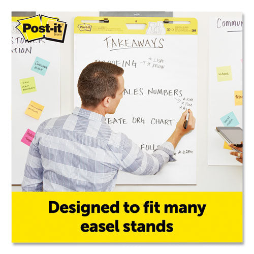 Use Post-it Easel Pads to capture and share ideas. With sheets that can stick almost anywhere, Post-it Easel Pads foster the imaginative thinking that lays the foundation for future growth. So when you want to successfully plan, collaborate, and capture and build on ideas, they're ready to help you succeed. Post-it Easel Pad sheets feature premium paper that resists marker bleed-through; they stick to most surfaces and can be repositioned again and again, without surface damage. The sturdy backcard features a handle for easy portability and universal slots to fit most easel stands.