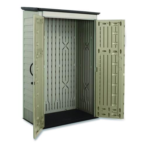 Designed to easily fit ladders, trimmers and other tall outdoor equipment, the durable Rubbermaid® Vertical Shed provides a vertical storage solution for your outdoor space. With double-walled construction and plenty of storage space, this rugged shed protects your outdoor gear from the elements.Note: This is a non-returnable item.