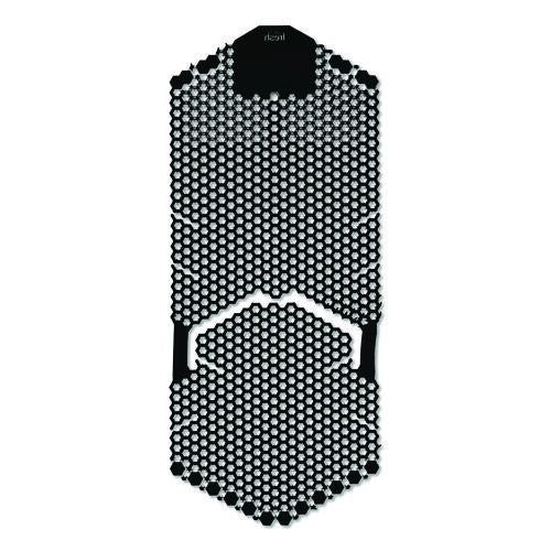 The vertical 60-day urinal screen contains three times more fragrance than competitors. The patented two-sided design eliminates 99% of urine splash on both sides for error-free installation. The Vertical screen doesn't require mounting, simply place the base over the drain and lean the body up the back of the urinal and you're done. No suction cups to engage so it's faster and there's less waste. Each screen has date tabs for replacement reminders and contains beneficial bacteria that consume odors and keep drains clean, clear and smelling fresh.