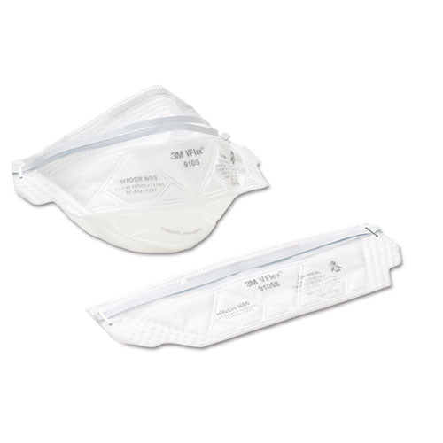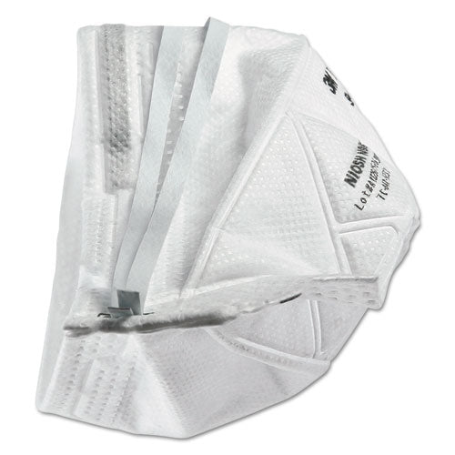 Economical, disposable N95 particulate respirator is designed to help provide quality, reliable worker respiratory protection for certain non-oil based particles. It has a unique folded design with 3M proprietary filter media and V-shaped pleats that expand to help make breathing easier. In addition, the V-shaped pleats flex with mouth movement for easier talking.The respirator features uniquely designed tabs for positioning the respirator on the face and embossed front panel to help the respirator retain its shape. Flat-fold design allows for convenient storage prior to use. Adjustable noseclip helps provide a custom fit and secure seal. Uniquely designed tabs for respirator positioning on the face. Spacious inside with comfortable inner layer. Compatible with a variety of eyewear and hearing protection.Note: This is a non-returnable item.