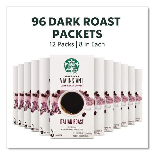 VIA Ready Brew Coffee, 0.11 oz, Italian Roast, 8 Packets/Bag, 12 Bags/Carton