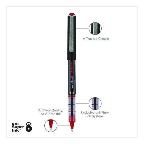 Make your everyday writing easy with the effortless and dependable performance of Vision Rollerball Pens from uni-ball featuring strong, long lasting tips. Capped roller pens deliver an even liquid ink lay-down for reliably smooth, vivid lines and a rich color for improved clarity and readability. Great for all writing tasks from taking notes to record keeping with archival quality, acid free roller ink. Innovative uni Super Ink technology forms an indestructible bond with the paper to minimize the risk of check washing or document fraud, while also protecting from water and fading. The exclusive Uni-Flow Ink System ensures a consistent, delightfully fluid writing experience, and a translucent window ensures that you don't run out of ink unexpectedly. Enjoy beautiful clean lines and give all of your ideas a burst of brilliant color with this classic style rollerball pen.