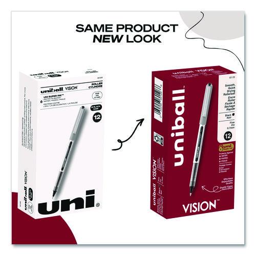 Make your everyday writing easy with the effortless and dependable performance of Vision Rollerball Pens from uni-ball featuring strong, long lasting tips. Capped roller pens deliver an even liquid ink lay-down for reliably smooth, vivid lines and a rich color for improved clarity and readability. Great for all writing tasks from taking notes to record keeping with archival quality, acid free roller ink. Innovative uni Super Ink technology forms an indestructible bond with the paper to minimize the risk of check washing or document fraud, while also protecting from water and fading. The exclusive Uni-Flow Ink System ensures a consistent, delightfully fluid writing experience, and a translucent window ensures that you don't run out of ink unexpectedly. Enjoy beautiful clean lines and give all of your ideas a burst of brilliant color with this classic style rollerball pen.
