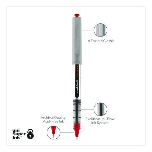 Make your everyday writing easy with the effortless and dependable performance of Vision Rollerball Pens from uni-ball featuring strong, long lasting tips. Capped roller pens deliver an even liquid ink lay-down for reliably smooth, vivid lines and a rich color for improved clarity and readability. Great for all writing tasks from taking notes to record keeping with archival quality, acid free roller ink. Innovative uni Super Ink technology forms an indestructible bond with the paper to minimize the risk of check washing or document fraud, while also protecting from water and fading. The exclusive Uni-Flow Ink System ensures a consistent, delightfully fluid writing experience, and a translucent window ensures that you don't run out of ink unexpectedly. Enjoy beautiful clean lines and give all of your ideas a burst of brilliant color with this classic style rollerball pen.