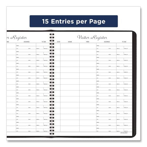 A great way to keep track of your visitors; room for 900 entries. Each two-page spread includes 30 entries, 15 entries on the left page and 15 entries on the right page. Address blocks provide two lines to capture full information. Pages are undated to use any date, any year. Wirebound for durability; lays flat when opened.