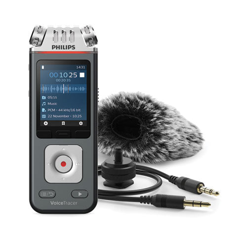Capture music in outstanding definition and stunning clarity with three high-quality microphones. The built-in motion sensor detects the recorder when it is placed on a desk or held and selects the microphone sensitivity to suit the recording situation preventing you from accidentally blocking the audio you want to record. The pre-recording function allows you to record the last five seconds before you press the record key, allowing you to spontaneously record important parts of a conversation. The large color display offers sharp images, making it easier to see and read everything at first glance. The included wireless remote control enables convenient placement of the recorder to best meet the needs of the audio environment while maintaining ease of operation. DSLR camera mount for recording excellent audio simultanously while filming.Package Includes: USB-C Cable; Hotshoe Mount; Wind Guard; Audio Cable