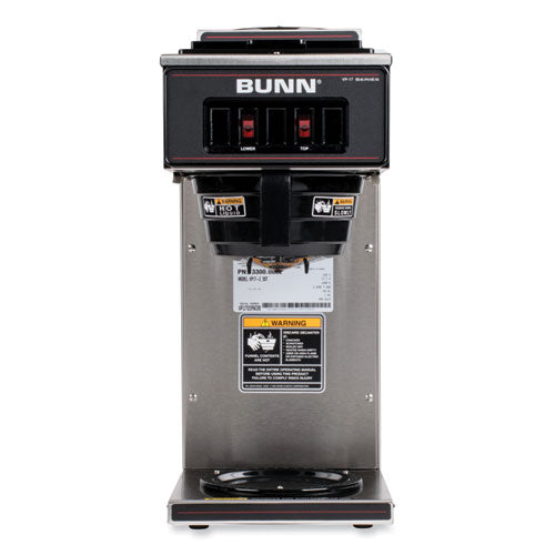 A simple switch design that requires neither plumbing nor special wiring. All stainless steel construction. SplashGard® funnel deflects hot liquids away from the hand. Two individually controlled warmers. Pourover brewer requires no plumbing, completely portable. Brews up to 3.8 gallons per hour. Decanter sold separately.Package Includes: 64 oz Plastic Pour-In Water Pitcher; (50) Coffee FiltersNote: This is a non-returnable item.