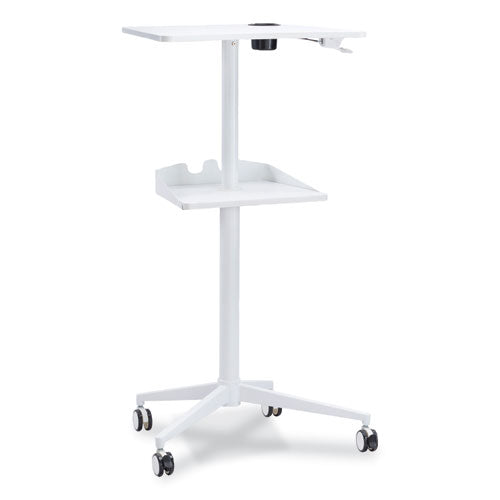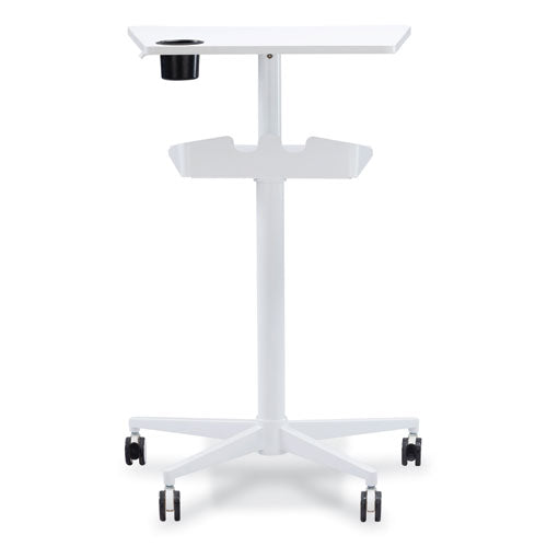 The Vum™ Height-Adjustable Workstation was designed with today's flexible working environments in mind. Affordable and durable, this workstation was built to be both functional and adaptable. Great for on the go or to anchor a home office. Get the most from your workday with this workstation. Mobile station on four casters, two locking. Features dual work surfaces; the top adjusts in height 12.25, the secondary shelf is stationary and has a hook for personal items. Features one plastic cup holder. Part of the Safco Active Collection: Safco Active products are designed to promote active movement throughout the day in many workplace settings.Note: This is a non-returnable item.