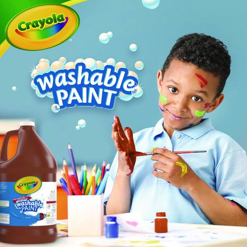 Get crafting with Crayola Washable Paint! Featuring vibrant, richly pigmented color, this craft paint is perfect for creating eye-catching artwork. Smooth, creamy colors are easy to blend and provide opaque coverage on a variety of surfaces. Use for large group projects, classroom crafts, at home creative activities and more! Colors can be used on their own or combined with other washable paints to create your own unique shade. Stray marks wash easily from skin and most washable clothing.