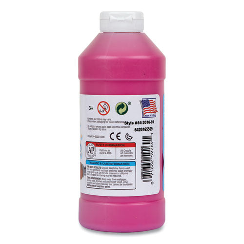 Get crafting with Crayola Washable Paint! Featuring vibrant, richly pigmented color, this craft paint is perfect for creating eye-catching artwork. Smooth, creamy colors are easy to blend and provide opaque coverage on a variety of surfaces. Use for large group projects, classroom crafts, at home creative activities and more! Colors can be used on their own or combined with other washable paints to create your own unique shade. Stray marks wash easily from skin and most washable clothing.
